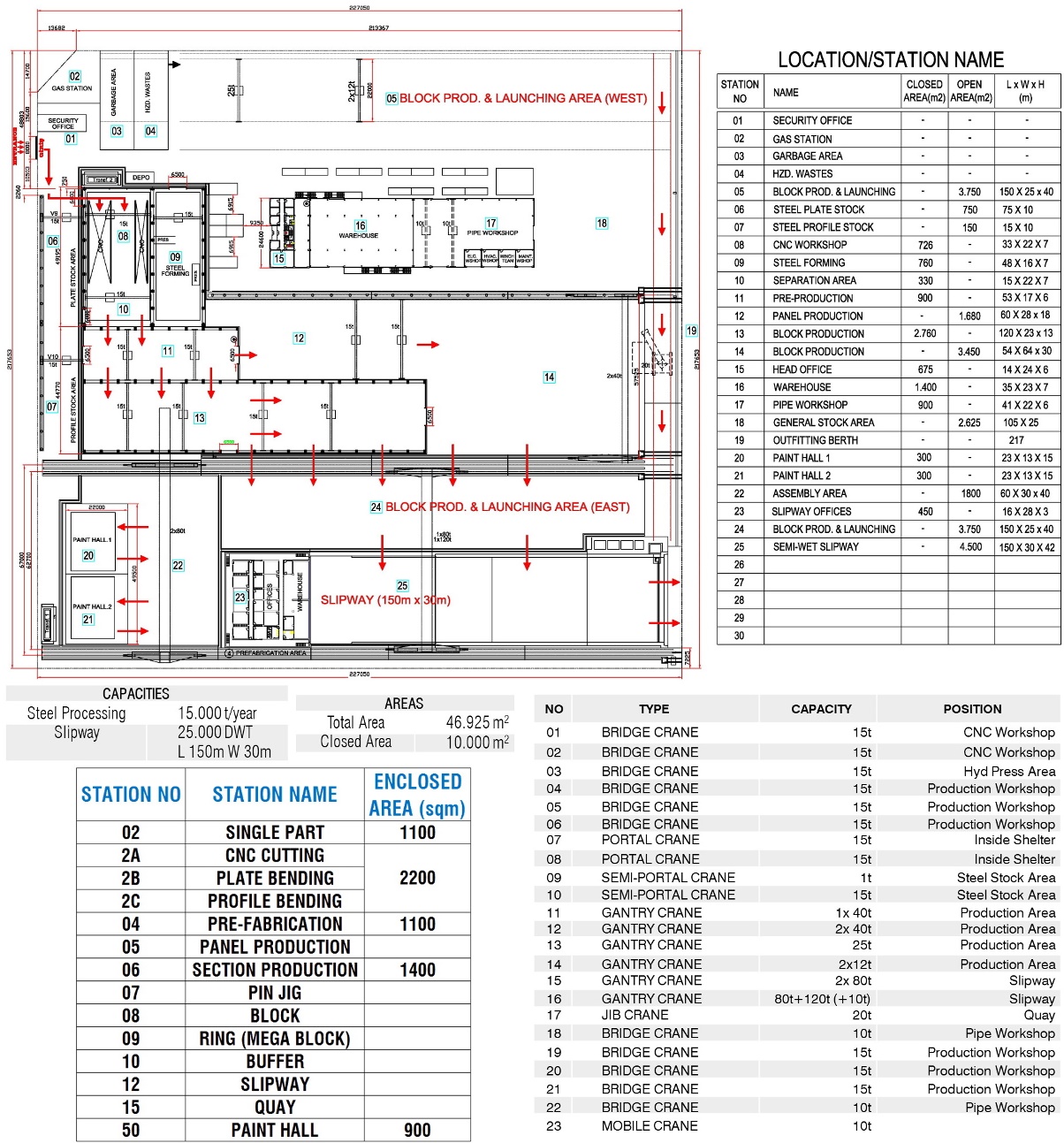 The layout of the facilities and manufacturing processes at ATLAS Shipyard are focused on maximizing efficiencies through application of mass production techniques in shipbuilding.